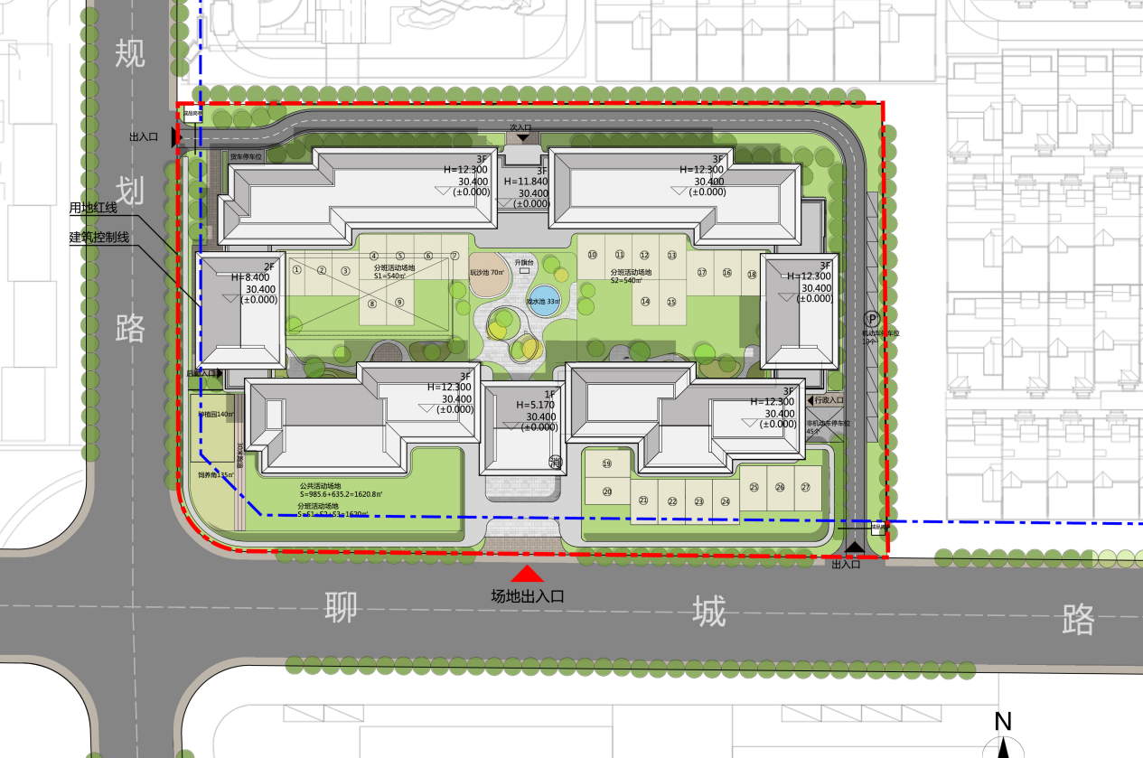 本项目位于济南市槐荫区北部,地处高铁围合北地块房地产开发项目(杨柳春风)X-1地块,用地面积约15404.44㎡,土地性质为教育科研用地(A3)。项目现状用地平整,南侧毗邻杨柳春风项目配套中小学,北、西、东三面均与济南杨柳春风居住小区相接。