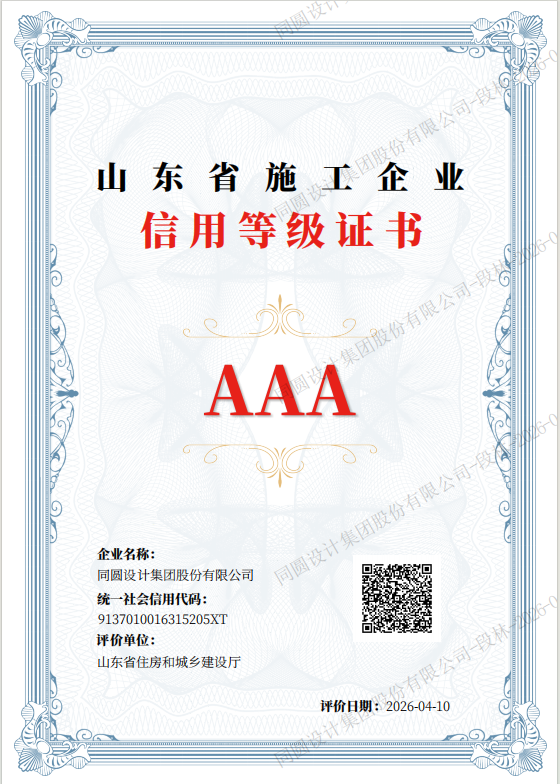 4月10日,依据《山东省建筑施工企业信用评价办法》,经省住房城乡建设厅严格评审核查,我单位凭借规范管理、优良履约、完善信用体系及过硬综合实力,以总体满分的成绩成功获评建筑施工企业信用评价最高等级 ——AAA级信用企业。